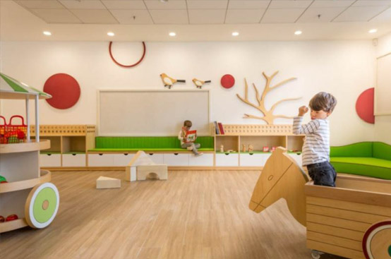 服务区--分设儿童活动区、消费者休息区、公共卫生间。