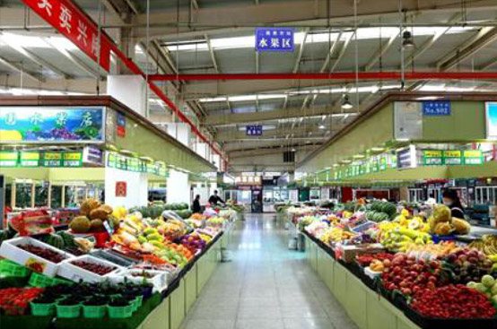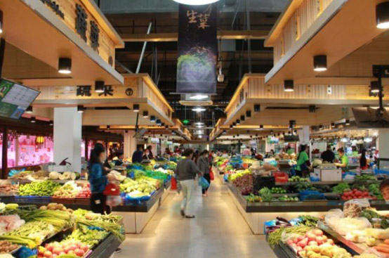 蔬菜摊位: 水果摊位的台面通常会采用阶梯式做法,水果摊位设置在靠近主入口门厅的位置,不仅可以让市场入口附近的环境整洁,还能提高顾客的购买欲。
