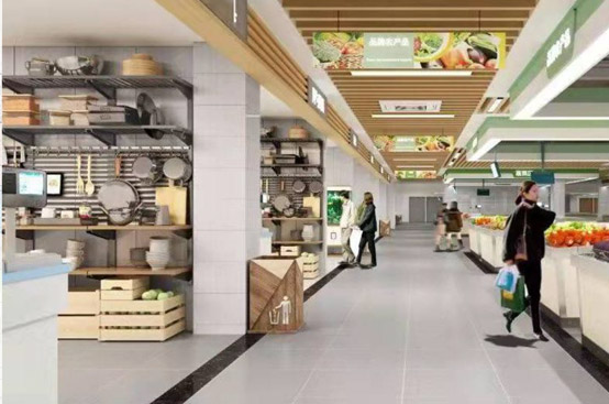 蔬菜摊位: 水果摊位的台面通常会采用阶梯式做法,水果摊位设置在靠近主入口门厅的位置,不仅可以让市场入口附近的环境整洁,还能提高顾客的购买欲。